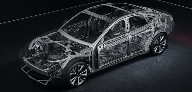 在P7的官网介绍中可以检索到如下信息:P7 采用高强度钢铝混合车身,热成型钢板 (1500MPa) 占比高达 12%,B柱部分采用双层热成型钢材,能在侧碰中给予乘员更好的保护。P7的车身钢铝连接部分采用飞机上的冲刺柳接技术,相比传统焊接,静载强度提升 70%、疲劳强度提升 50%。