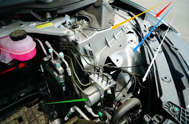 就前行李舱轮室罩部分的铝材质、钢材质和纤维材质构成的2种“硬”材质和1种“软”材质的构成看,减重的设计思路被应用到尽可能多车身结构上。而ABS阀体单独设定这说明,P7的制动系统或采用的是传统EV车型适配的真空泵+储气罐和制动总泵技术,或ABS阀体与第1代iBoost独立设定的制动系统。
