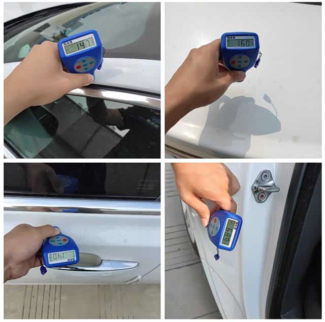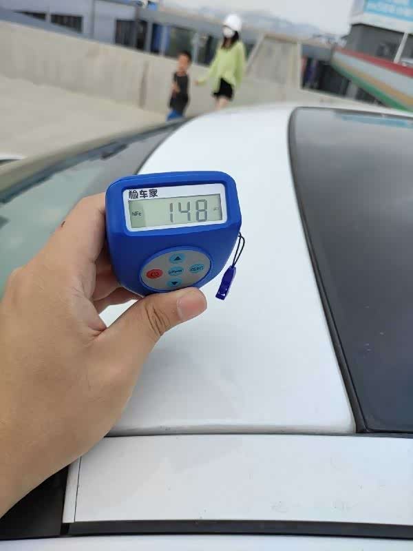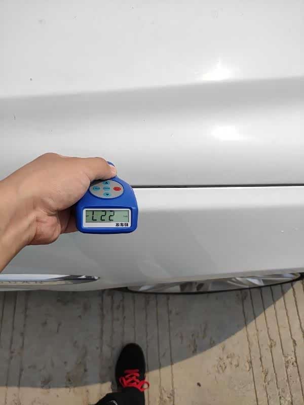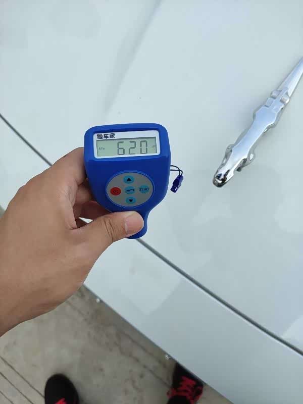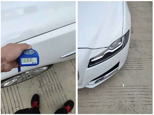 拿出仪器看一下车身漆面厚度,根据漆面修复程度来判断有没有碰撞事故。一般来说捷豹的正常漆面厚度都在130um左右,厚度170至400um说明有喷漆,厚度400um以上说明有过钣金喷漆。