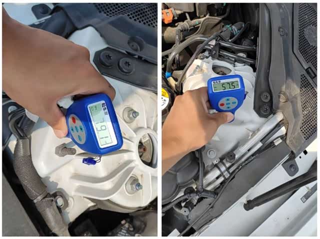 左右两个减震器塔顶,数值正常,肉眼复查也没有脏点飞漆,非常OK!