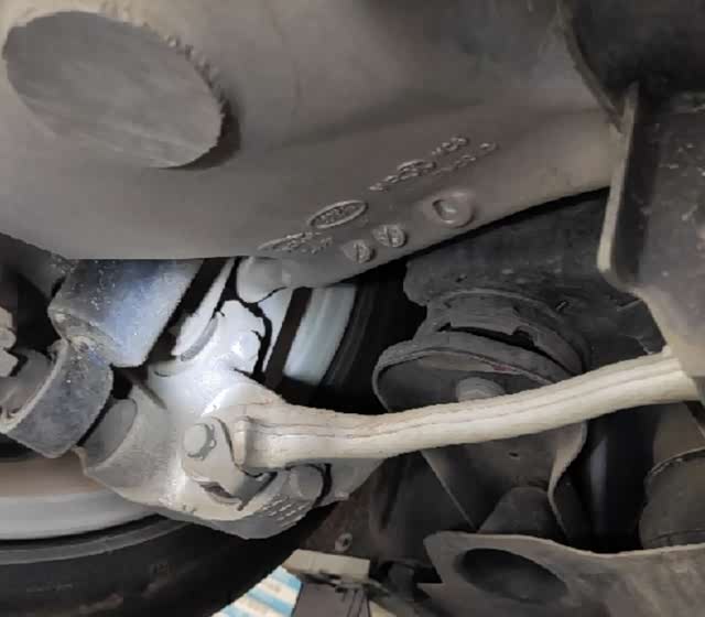 路试回来升起底盘,可以看到四条轮胎均为原厂,且无磕碰,毕竟公里数在那放着。