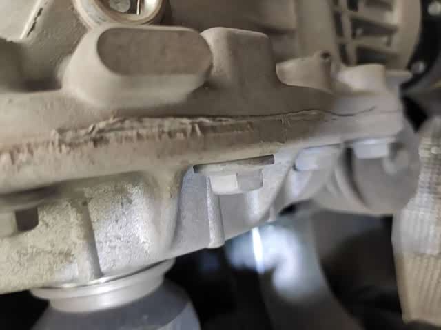 由于是前置后驱,所以多了传动装置,可以看到传动轴螺丝也是没有动过的,后差速器主螺丝也没有分解,中间胶体也无重打痕迹,这就是典型的不漏不拆不重打。