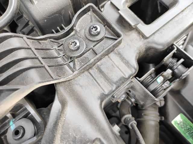水箱框架螺丝拆卸的痕迹,好在是塑料的可更换,要是其他车型这个位置是金属的话,那就事故车没跑了。