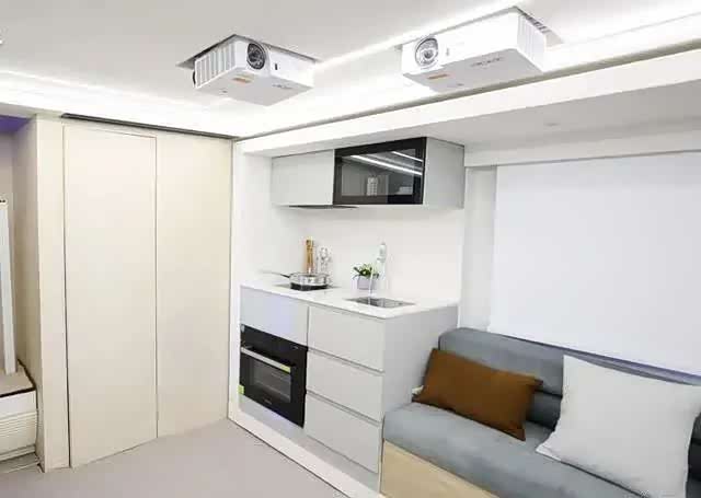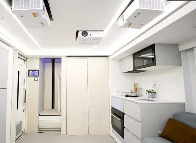 在客厅沙发一侧,有超大尺寸整体式车窗,透光度非常高,观赏效果极佳,会客厅的娱乐设施也堪称顶级,小米透明电视与BOSE高品质音箱系统组成高档家庭影院,有五个摄像头实现全息投影,利用科技吸光墙,达到全息立体投影,视听效果非常震撼。