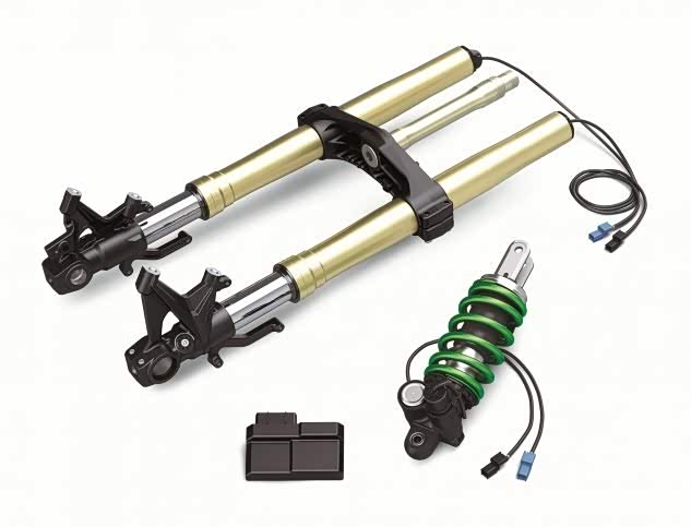 前叉和后减震器上的内置行程传感器可提供实时行程速度和位置信息。传感器线圈每毫秒向KECS ECU提供输入,并由IMU(车辆加速/减速),FI ECU(前/后轮速度)和ABS ECU(前制动钳压力)提供的信息进行补充。毫秒。然后,KECS ECU将电流引导至螺线管,以根据情况需要调整阻尼。