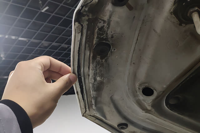 打开机盖,这其实还是让包子有些意外的,这机舱应该是没被收拾过的...掐一下这个机盖的打胶,嗯...后打的,有了漆膜仪的钣金数据这也在意料之内了。