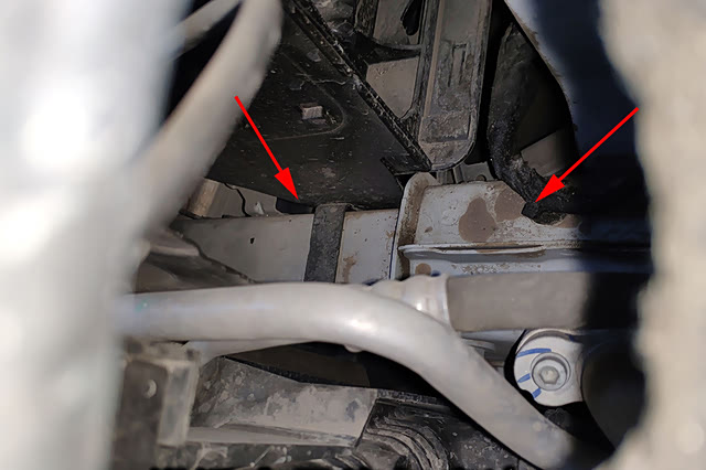 这里是前部纵梁的位置,检查未发现撞击修复的痕迹。由此看来前面说到的前机盖锁扣动过应该是调整缝隙所致,两侧前翼子板的局部钣金应该是被什么东西挤进去了,并未伤到内部结构件。下来我们来看下发动机本体↓