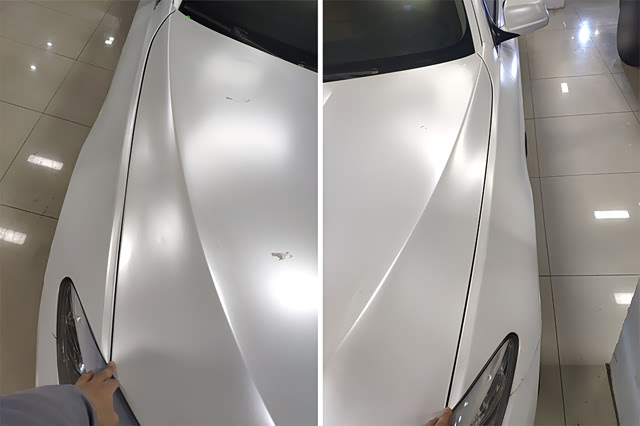 真的假的?包子心想话先别说这么自信吧···仔细看改色膜贴的状态,究竟是前车主舍不得花钱贴成这样了,还是商家将问题车收回来之后低价用劣质改色膜来掩盖一部分事实呢?检测完就知道了↓