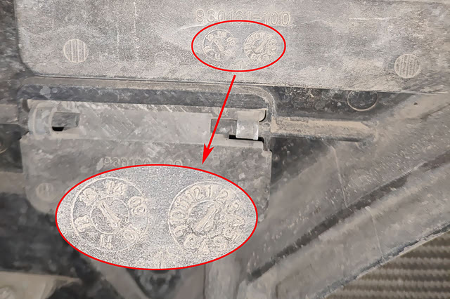 这里是大灯和散热器风扇的出厂标签,符合原车零部件的出厂日期。这也给包子吃了一颗定心丸,如果前部有大事故的话这俩东西肯定第一个保不住的。