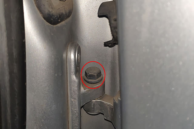 坐进内饰之前我们先来看一眼车门的状态,检查过后发现车子的右前、右后车门螺丝均有拆装痕迹。