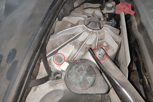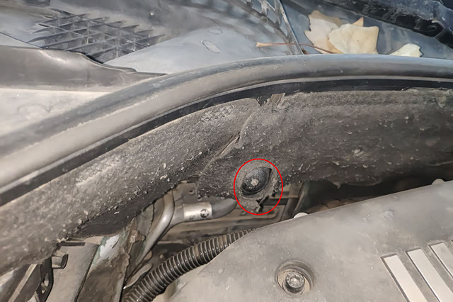 检查玻璃水水壶、机舱加强筋、机舱防火墙隔热棉的固定螺丝发现存在拆装痕迹,减震器塔顶螺丝未见拆装痕迹。