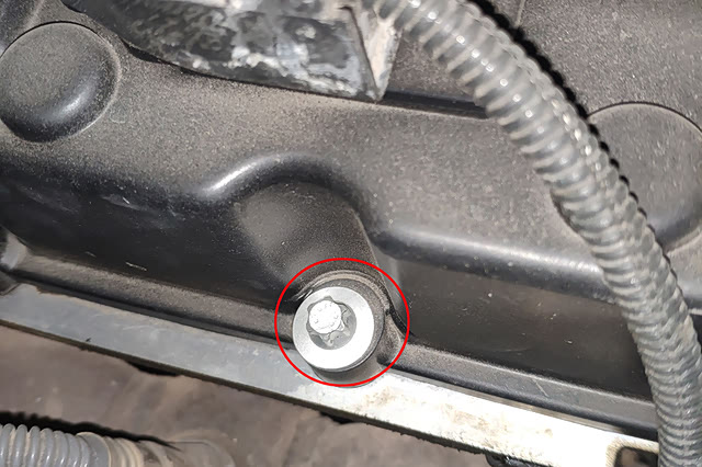 检查发现气门室罩盖存在维修拆装痕迹,也在意料之内,F18系列的宝马包子检测过的太多太多了,不论是N52还是N20就没有不漏油的,所以包子推断隔热棉和加强筋的拆装应该是之前有过维修所致。