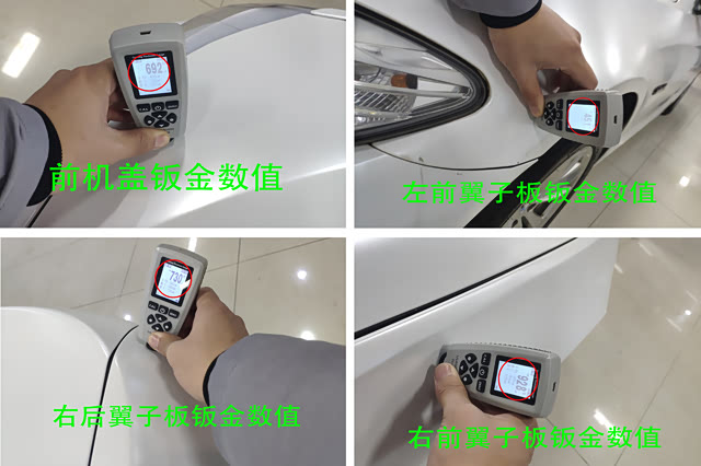 取出漆膜仪检查全车漆面,最后发现车子全车均有补漆痕迹,而且机盖、四个翼子板、后备箱盖均有钣金的痕迹,如此看来刚刚车商说的有补漆真的是太“谦虚”了。