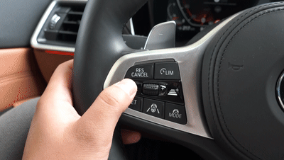 部分宝马入门车型由于不配备定速巡航控制系统,就只剩下了限速器功能。按下图示按键后可设置当前车速为限速值,但与定速巡航不同的是,按下后仅仅是限制车辆能达到的最高速度,这时无论你怎么踩油门车辆都不会超过你设定的值。