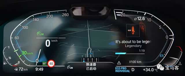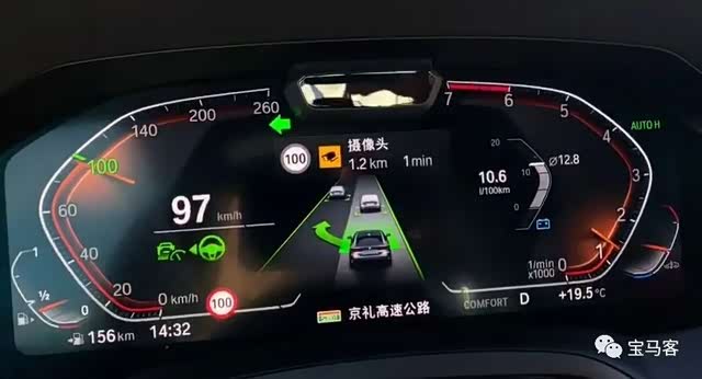 在自动驾驶辅助系统Pro中,宝马还提供了3D鸟瞰图视角,道路情况将以动画的形式实时显示在仪表盘上,还能够清楚识别到是小汽车还是大货车或是两轮车,但你首先得在“我的座驾”→“设置”→“显示器”→“组合仪表”设置中将该功能开启后方可使用(下图所示)。