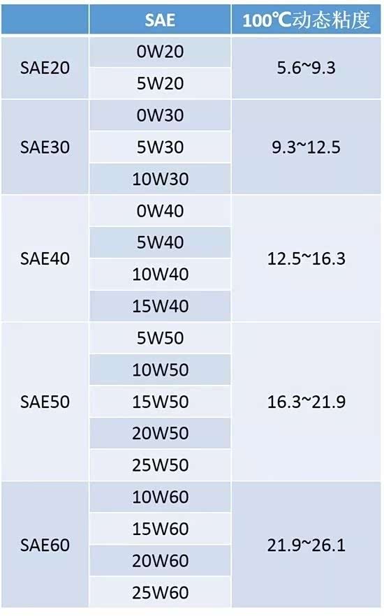 SAE 复合分级的定义最早的SAE标准是单级标准,只能描述机油在高温下的粘度情况,显然这是远远不够的,此后出现了复合分级,也就是加入了关键的「W」(Winter),最终形成了我们今天看到的「5W-40」的形式。