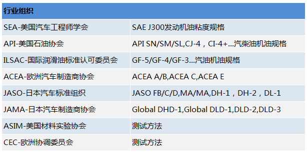 润滑油标准和测试方法(机构或国家)我希望大家能稍微了解一下其中ILSAC标准和ACEA标准,因为ILSAC与API标准有对应关系,你能理解API标准,也就懂了ILSAC标准的皮毛。