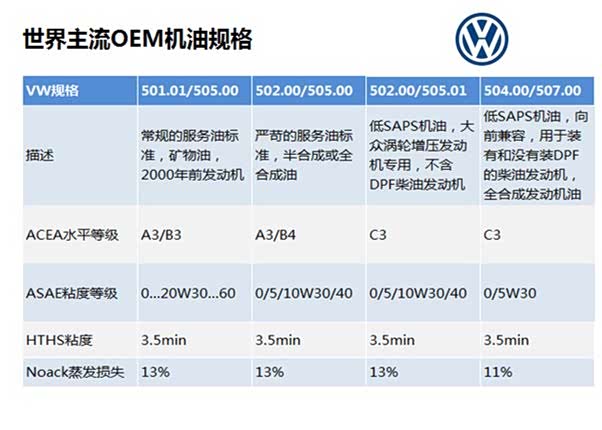接下来就要来看各大主机厂使用的机油标准了,由于文章长度的限制,我只列举几个,详情请关注我此前的文章。