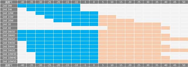 「W」其实代表的就是低温,Winter以「5W-40」为例,表示此机油适合(非必须,非限制,而是适合)在-35 ℃~40 ℃的环境中使用。此外,一般认为「W」前的数字越小,机油的低温流动性越好;「W」后的数字越大,高温的粘稠性越好。