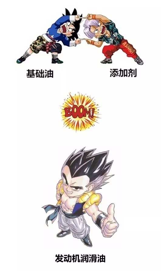 机油的构成,其实也不是那么复杂,主要由两部分:基础油和添加剂。这就好像「龙珠」中的悟天和特兰克斯的合体:
