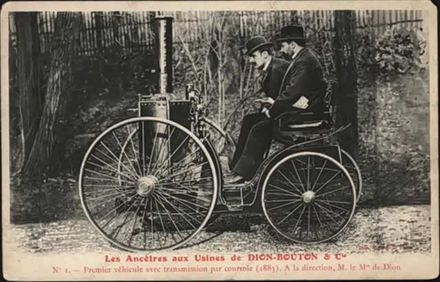 - 1883年,初创的巴黎汽车制造商De Dion, Bouton et Trépardoux推出了首款车型—— 一台四轮蒸汽机汽车,这可能是全球最早使用皮带传动的汽车。此后,该公司曾一路成长为全球最大汽车制造商。