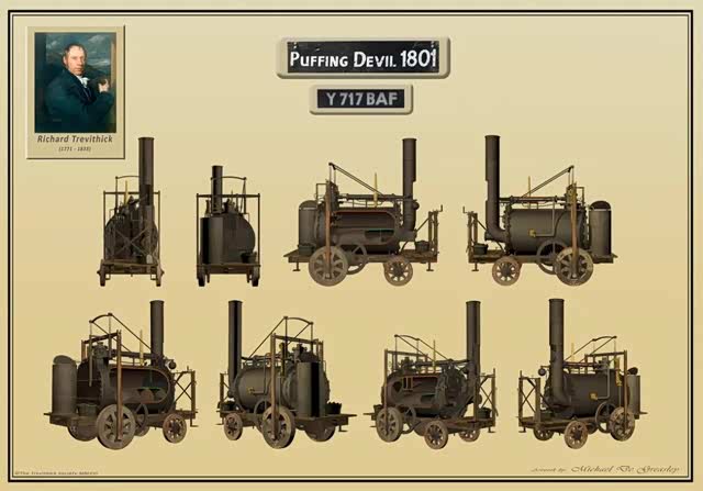 - 1800年,英格兰工程师Richard Trevithick制造了首台可载人的蒸汽动力汽车并进行了试车,1801年底又制造了一台可载7-8人的全尺寸版,该车被命名为Puffing Devil。