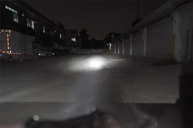 最后来看看我开头所说的大杀器,一体式LED双光透镜。真的是没有对比就没有伤害,我们从图片就可以看出LED双光透镜的铺路效果非常好,不仅亮度提高很多,而且覆盖面积非常广,左右两边都看得清清楚楚,远处的墙壁也是照得非常清晰!这样的光线强度,开近光就可以有很好的视野效果了,而且遇到远光dog也不用怂,说不定还能反杀呢。