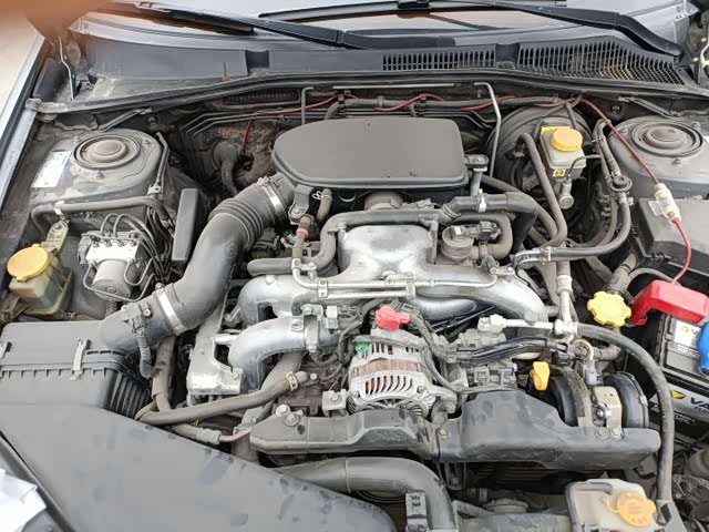 打开机盖后,大概看一下发动机舱还是比较规整的,整个动力系统没有大的改装,只是有一个低音炮的加装线路,看来原车主也是个音乐发烧友。揭掉发动机罩盖,欣赏一下斯巴鲁的水平对置发动机,占据横向空间比较大,不过重心更低,这台发动机是2.0L排量的,最大马力150匹,最大扭矩196牛米,匹配4挡自动变速箱。这个动力大拿就不加评判了,毕竟这么多年了,现在就主要看它的工况怎么样,能不能继续爆发能量。