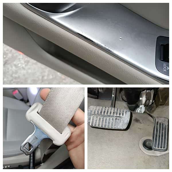 车门饰板拉手位置都磨的掉漆了,安全带是原厂的,不过已经从原本的灰白色变成了灰黑色,刹车踏板踩出了一个三角形的痕迹,还有空调出风口破损,这种使用程度,跑了30万公里不止吧!