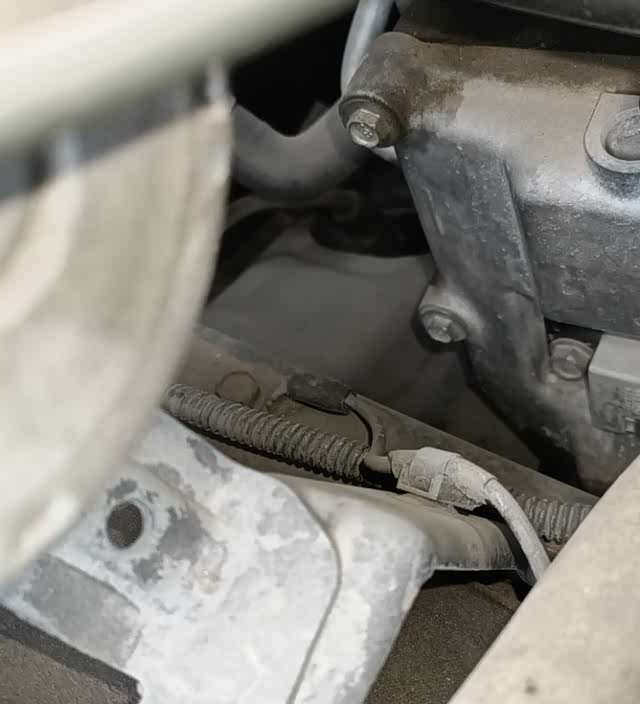再来看发动机,气门室盖漏油有点厉害,都把螺丝糊上了,看不出来螺丝有没有动过;发动机机爪螺丝拆过了,机爪的作用是把发动机固定在车架上,防止抖动松旷,吊装发动机是必须要拆机爪的;再看进气歧管和排气歧管也都拆了,顿时有了一种不祥之感。