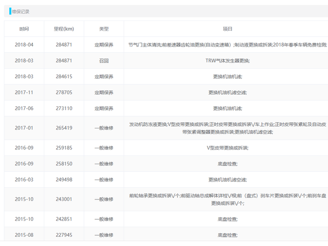 最后看一下这台力狮的4S店维保记录,记录还是相对比较齐全的,从06年年底首保一直延续到了2018年4月份,记录里没有大的事故维修资料,但是公里数却明显有问题了。最后一次进店就已经28万公里了,如今又过了三年时间,里程表却显示只有15万公里,大拿保守估计真实里程30万公里不过分吧!对半调,还真是行业惯例。