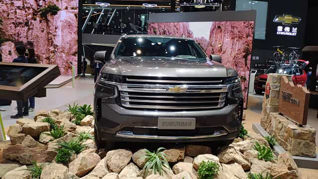 2021年上海国际车展: 雪佛兰Suburban High Country实车,是雪佛兰车型中最旗舰的产品,新车带有浓厚的美系风格。车身尺寸长宽高为5725/2060/1923mm。竞品主要为凯迪拉克凯雷德长轴距版等车型,拥有充满气势的外观设计,霸气感十足,动力搭载6.2L V8发动机,并且变速箱采用了Hydra-Matic 10L80 10速自动变速箱。