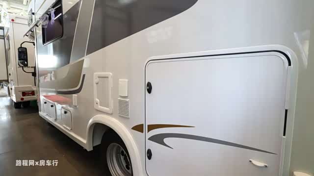 车身外部配置方面,整车配置有3.5m遮阳篷、电动踏步、水电接口、工具仓、自行车架、后爬梯和超大贯储物仓。此外,车尾下方是还设计了三孔拖车杠和支腿。