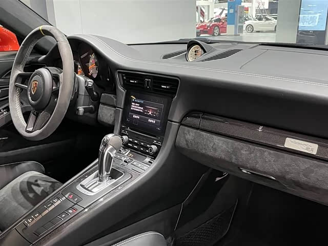 内饰其实并没有过度地去删减配置,不过相比GT3,GT3RS还是做了一些有效的减重措施。他采用了轻量化的桶形座椅,并且加装了防滚架,为了轻量化,GT3RS还取消了金属门把手。当然了,你还可以花上196700元进一步选装Weissach套件,更轻的轻质结构措施可以进一步减轻车身重量。今天这台就上身了这幅套件,在二手车市场,有这幅套件的车型会比普通版本保值率高出不少,对于大部分保时捷赛道版车型来说,只要有Weissach套件那就一定值得选装!