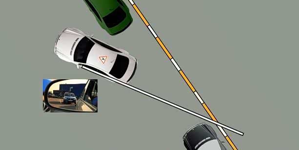 3、继续倒车,等你的车头与前车的车尾在一条线的时候,再向左打死方向倒车。很多人很难判断自己的车头和前车的车尾在一条线,其实可以看副驾驶侧的后视镜,当右侧的后视镜与前车的尾灯重合的时候,基本上就不会剐蹭到了,吃不准的多下来看几次就有数了。