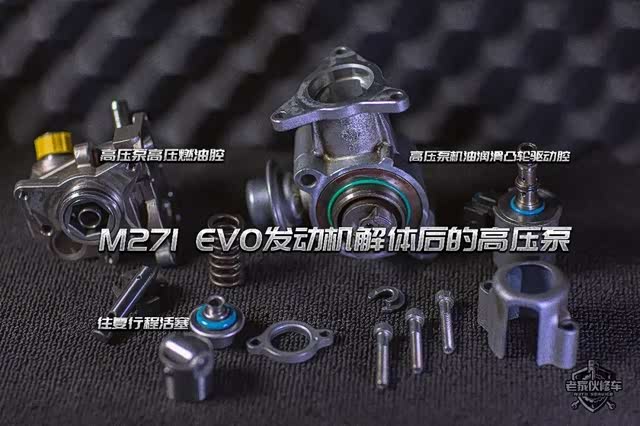 M271高压泵产生的高压是通过一个由凸轮轴旋转驱动一个三方桃心块,通过凹凸变化再驱动一个往复活塞上下运动,从而高速往复挤压上汽油腔内汽油达到很高的汽油压力。高速运动的活塞需要机油的时刻润滑,后期一些M271发动机机油中有较浓的汽油味道都是因为磨损造成的上下两个工作腔中机油和汽油混合,一般都是机油使用问题造成的。