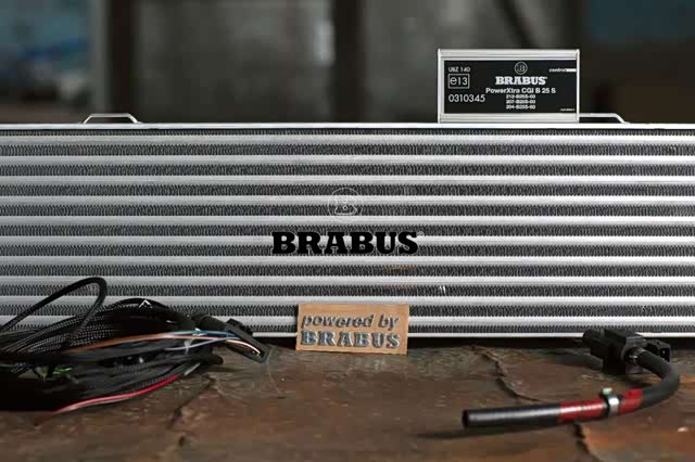 M271 EVO 为前置式中冷器,横置在前杠皮内侧, 位于散热器冷凝器之前偏下位置。这种布置方式因其位于车体最前端, 利用整车迎面风进行散热。冷却性能好,维修也方便。巴博斯的中冷器替换也非常方便,没有位置可调整即插即用。