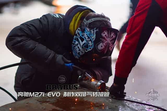 装过程中厂家提供的接口长短不对,手工制作了转接接口,图中使用了麦太保的圆柱打磨机进行表面打磨。排气系统各个部件通过焊接、法兰或卡箍相连以伍尔特排气密封剂保证不漏气。姿态调整也是一个重要环节,美国师傅欧阳经验丰富,整体调整从中间向后调整,从后正面望去姿态对称完美。