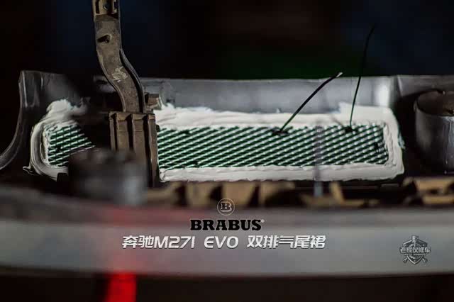 中红色尾灯双隔栅的巴博斯尾裙改装后非常动感,前裙和侧裙卖断货了否则前后呼应动感十足。两侧的隔栅是单独提供,首先喷漆再使用奔驰原厂的钣金胶进行粘合固定。