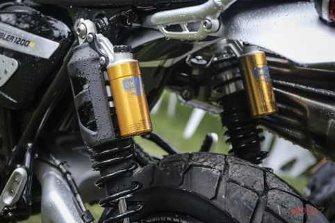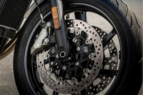 除此之外,电子控制系统也能够好好地控制住扭力充沛的Speed Twin。三种骑乘模式(ROAD、RAIN、SPORT)即使是在骑乘中也能自由切换,所以在刚开始骑乘时选择稳定的RAIN模式,等到轮胎变热之后则换成SPORT模式,借此就能轻易享受到Speed Twin的真正实力。并且Speed Twin也搭载了现在已经成为基本配备的循迹控制系统及ABS系统,因此在激烈操驾时亦不需担心。