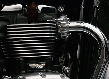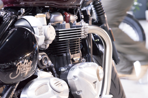Bonneville T120搭载1200c.c.水冷双缸引擎,散热鳍片致敬着经典空冷设计。