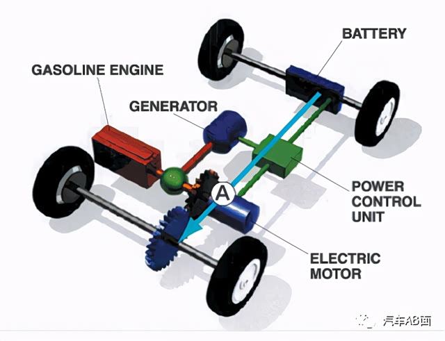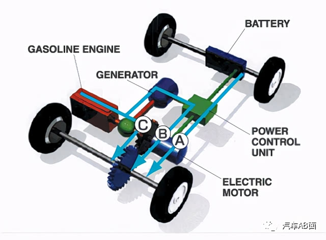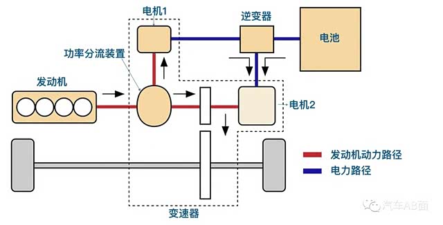 常规工作模式下,发动机的动力一部分直接驱动车轮,另外一部分转换为电力,通过驱动电机输出辅助动力。“功率分流”(power split)描述的正是这一特性。