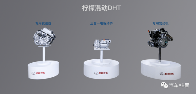 2020年12月,长城汽车发布了“柠檬混动DHT”。此处DHT的含义是混合动力专用技术(Dedicated Hybrid Technology),而非混合动力专用变速器(Dedicated Hybrid Transmission)。长城柠檬混动DHT包含三大核心组件,专用发动机、专用变速器、电驱动桥。