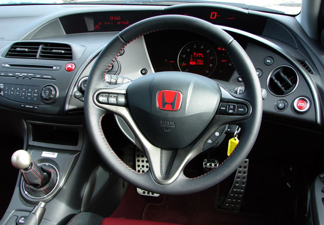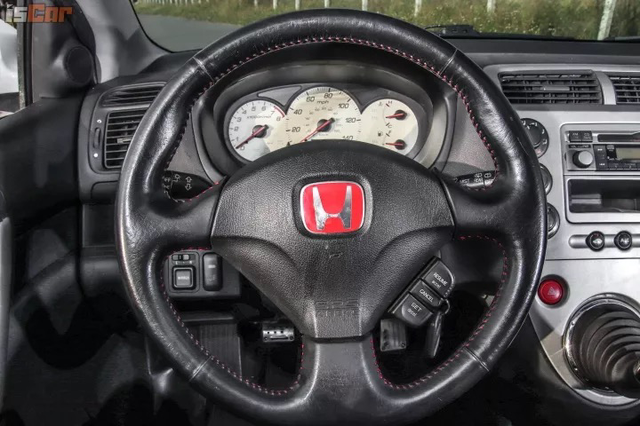 来到车内,从EP3这一代就开始采用的双层式中控界面,在FN2上则更完整的规划了起来。上层时速、下层转速的两层式仪表的设计,在当时也算是相当先进且新颖的设计,即便是放到现在也不算过时,辨识度算是直觉且清晰。不过因为车辆问世时液晶显示的技术尚未完全成熟,下方的转速表界面仍然为指针式设计。 一键启动的红色Engine Start按键,在FN2之后也成为历代标准配备的指标。不过有趣的是,FN2无法全靠这个按键进行启动或者熄火,必须与下方的钥匙同步配合才有作用。此外FN2采用旋钮型式的操作键,流露出了当时欧系钢炮的专属风格,而至于TYPE R一贯常见的红内装与专属配件,在FN2上依旧完整保留呈现。