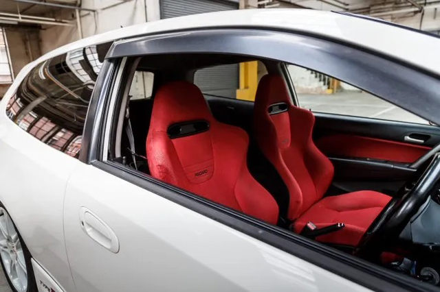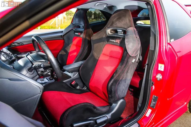 虽然TYPE R EP3的内饰延续自基本款“以人为本”的那套,但比起当初EK9的设计,本田工程师还是做了不少改进,譬如安置在中控台的那根6速排挡,它的形状、行程、操作荷重等均经过本田精心的调教和设置,而且排挡杆离方向盘的距离也非常近,在激烈驾驶时能更流畅快速地完成换挡动作。同样思域TYPE R EP3独有的后侧窗玻璃和尾门玻璃以及红色地毯、原版Recaro赛车座椅、Momo方向盘取代了普通的本田原厂部件,同样使整车的运动气息十足。