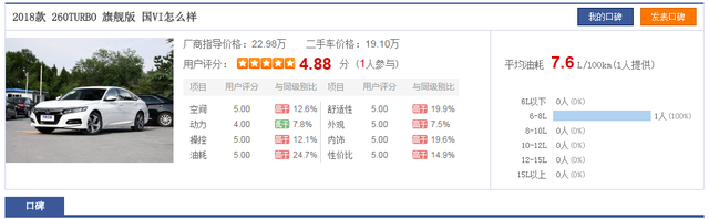2018款雅阁1.5T百公里油耗7.6L其实,丰田双擎在油费上的节省还体现在加注的燃油标号上。众所周知,很多车厂为满足排放法规都开始采用小排量涡轮机作为动力单元,如很早之前就在B级车上使用涡轮机的大众系、通用系和福特系等。如今,连日系B级车也开始使用涡轮增压机,如天籁2.0T和雅阁1.5T(国外有2.0T型号)。而大多数涡轮增压发动机为防止爆震,都需要使用高标号汽油,比如95号或以上。从价格上讲,95号汽油比92号汽油每升贵5毛钱左右,若以艾哥的尊瑞参考,目前共加油1.2万多升,仅仅是燃油标号的差价又节省6千块以上。这真实不算不知道,一算吓一跳啊!
