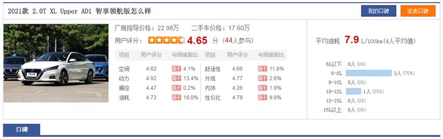 2021款天籁2.0T百公里油耗7.9L