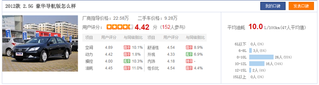 2012款凯美瑞汽油版综合百公里油耗10L