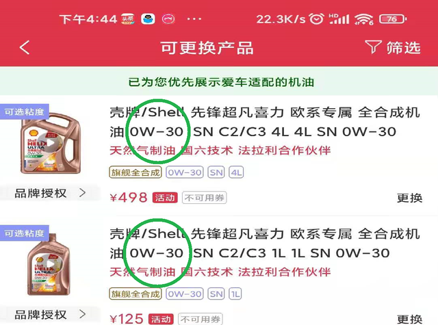 因此在优先考虑安全的前提下,途虎的程序就优先满足汽车厂家对机油级别的要求了。既然厂家要求用户使用C2级别机油,而C2级别机油在中国(大陆)市场上能找到的最低黏度是0W30,那只能推荐0W30产品了。