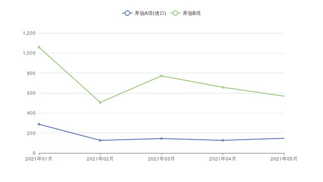 销量往往是购车的重要参考,根据众车网汽车行业数据监测显示,从2021年05月终端的销量来看,奔驰A级(进口)的销量为148辆,奔驰B级的销量为569辆,奔驰B级要比奔驰A级(进口)多售出421辆。